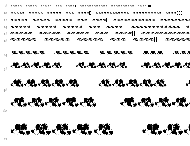 This is the page of KR Lots Of Hearts font. You can download it for free and without registration here. This entry was published on Sunday, October 23rd 2011, at 08:31 PM and was placed in the Regular catalog. Version of the KR Lots Of Hearts is Macromedia Fontographer 4.1 10/12/01. This page was viewed 225 times. File was downloaded 704 times.