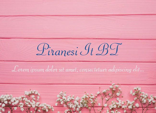 This is the page of Piranesi It BT font. You can download it for free and without registration here. This entry was published on Wednesday, November 23rd 2011, at 09:01 PM and was placed in the Regular catalog. Version of the Piranesi It BT is mfgpctt-v4.4 Dec 22 1998. This page was viewed 501 times. File was downloaded 187 times.
