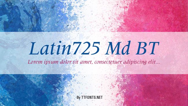 Questa è la pagina di font Latin725 Md BT. Si può scaricare gratuitamente e senza registrazione. Questo articole è stato pubblicato il Tuesday, 06 December 2011 e stato messo in Italic catalogo. Versione del Latin725 Md BT Version 2.001 mfgpctt 4.4. Questa pagina è stata visualizzata 203 volte. Il File è stato scaricato 3 volte.