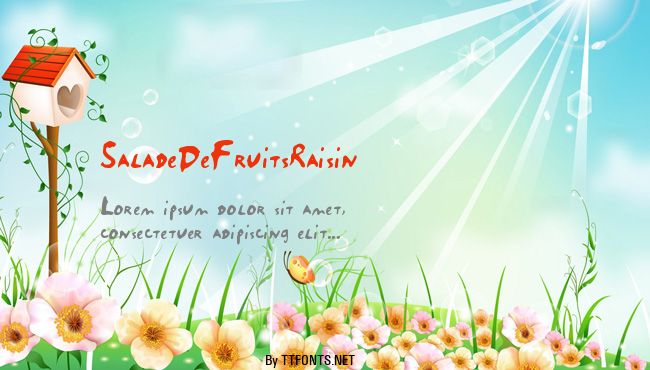 Questa è la pagina di font SaladeDeFruitsRaisin. Si può scaricare gratuitamente e senza registrazione. Questo articole è stato pubblicato il Saturday, 22 September 2012 e stato messo in Regular catalogo. Versione del SaladeDeFruitsRaisin Macromedia Fontographer 4.1.5 17/05/2002. Questa pagina è stata visualizzata 178 volte. Il File è stato scaricato 778 volte.