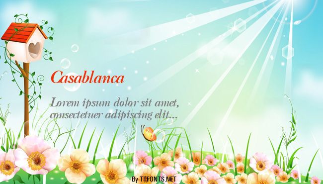 Esta é a página da fonte Casablanca. Você pode baixá-lo gratuitamente e sem registro aqui. Esta entrada foi publicada em Sunday, 04 December 2011 e foi colocada no catálogo Bold Italic. A versão do Casablanca é 1.0 Tue Nov 17 23:32:42 1992. Esta página foi visualizada529 vezes. O arquivo foi baixado 1136 vezes.