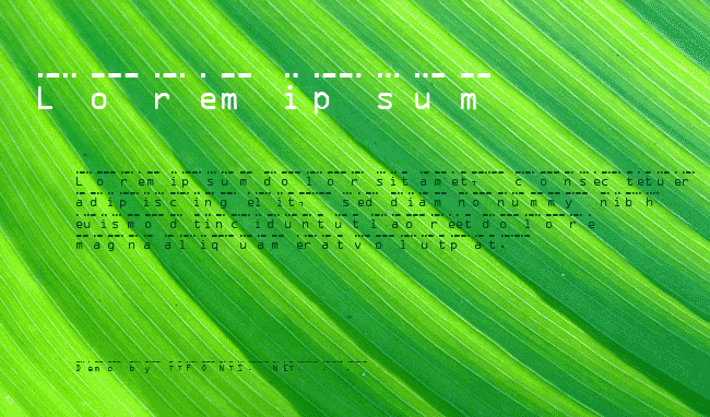 1890; International Morse also referred to as Continental, Radiotelegraph, Wireless, Morse Code Inventor: International Convention This font is a shareware. It must not be distributed by anyone for profit or be bundled within software packages without written permission from Marek Cerajewski (MCType Typography). If you choose to continue use this font beyond one day (1 day) trial period, you must send a fee of US$5.00 to the font's designer, Marek Cerajewski. (Current mailing address is posted on the Web site: http://mctype.com/) If you include your e-mail address, you will receive a notification about release of new version when available.